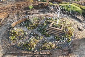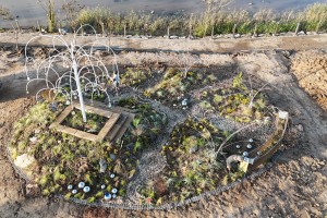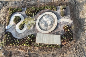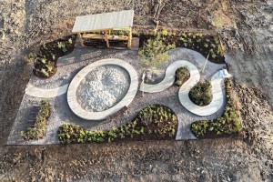 자연과 공존하는 물결의 흐름, 시간의 경과, 방문자의 발걸음이 있는 흐름의 요소들을 연출한 작품이다.정원의 구성..